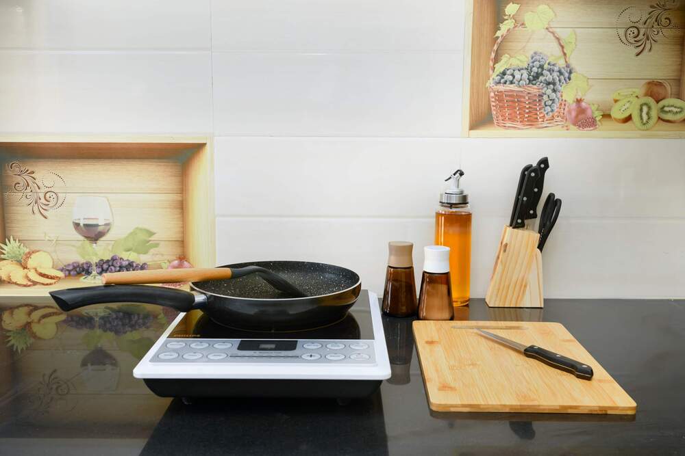 It includes 2 modern bathrooms with showers (one en-suite and one common). The living area is furnished with a work desk, a sofa, and a convertible queen bed, while the fully equipped kitchen is stocked with fresh coffee and teas.